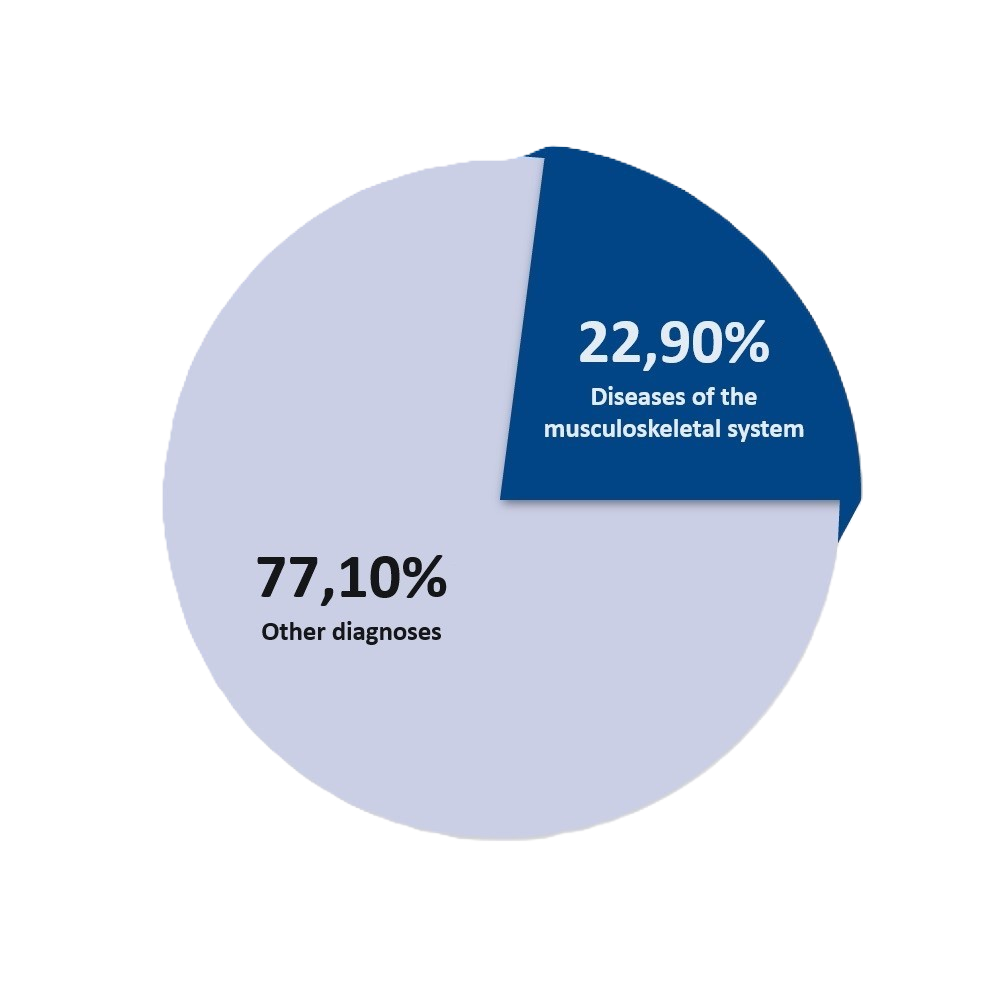 Musculoskeletal diseases are among the most common diseases according to the analyzes of all major health insurance companies. According to the Federal Statistical Office, the medical costs caused by these diseases come fourth: They amounted to 34.2 billion euros in 2015 (source: bundestag.de).